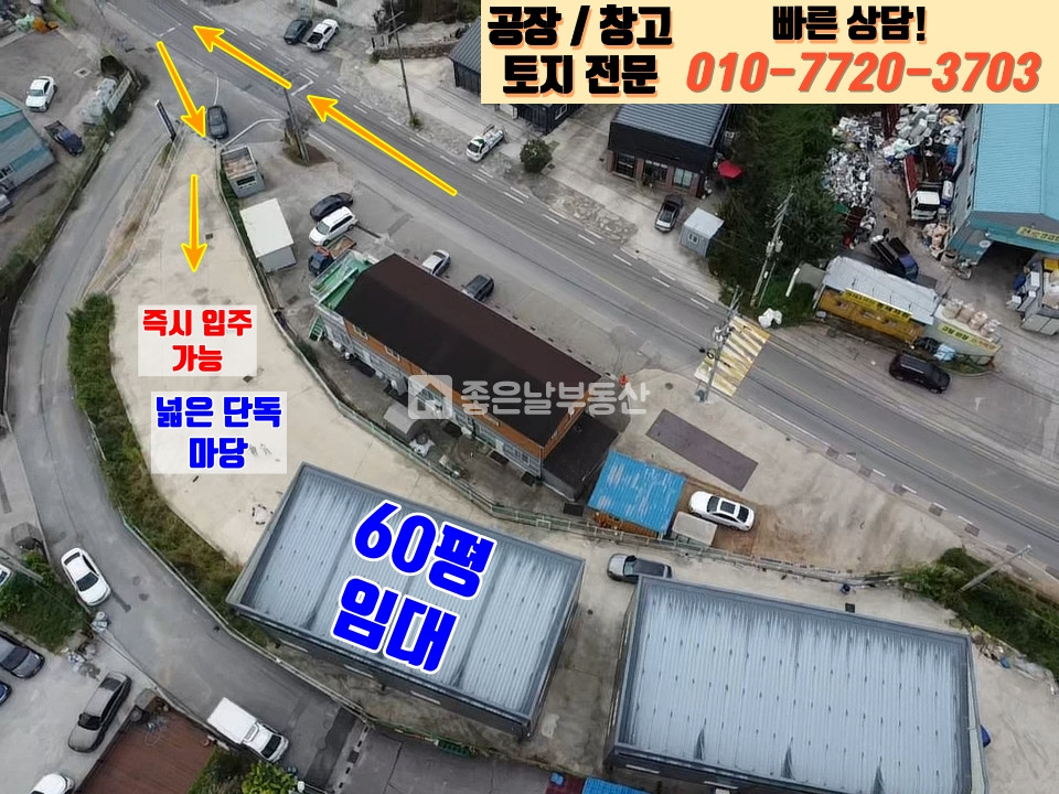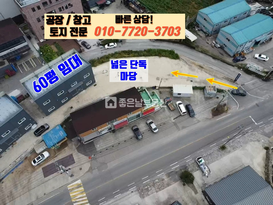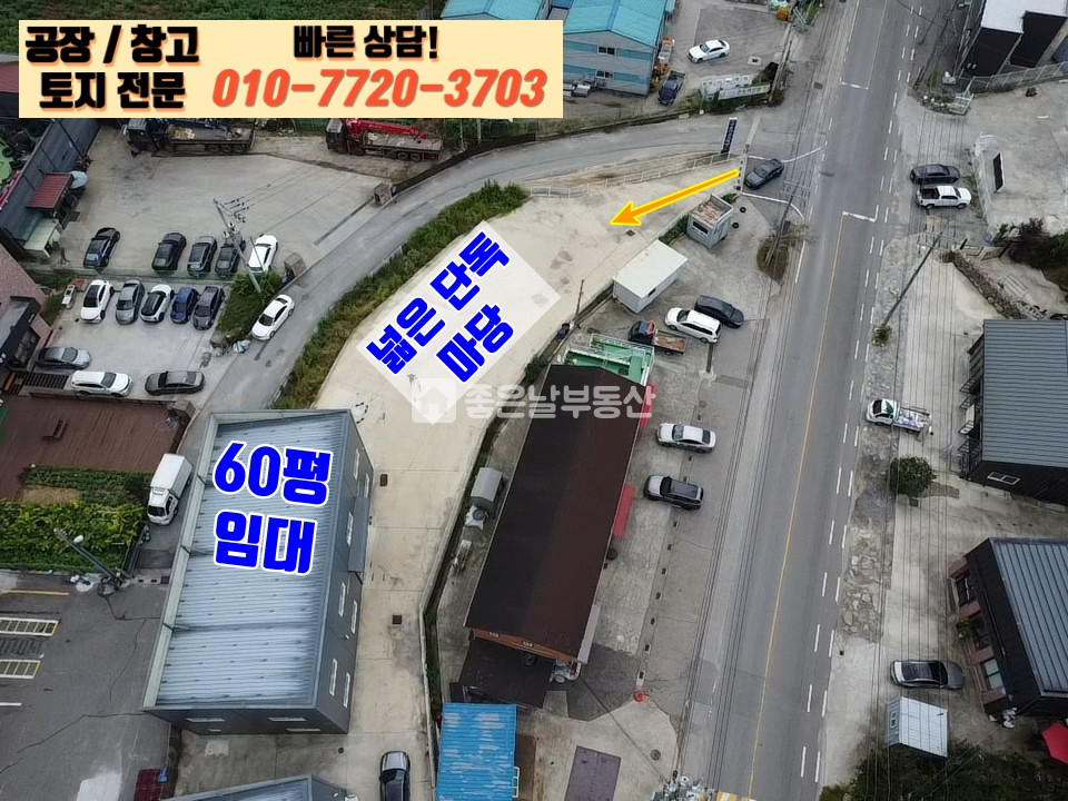 단독마당,넓은마당,대형차 진입 가능,신축,교통편의,도로변 위치,단독 공장