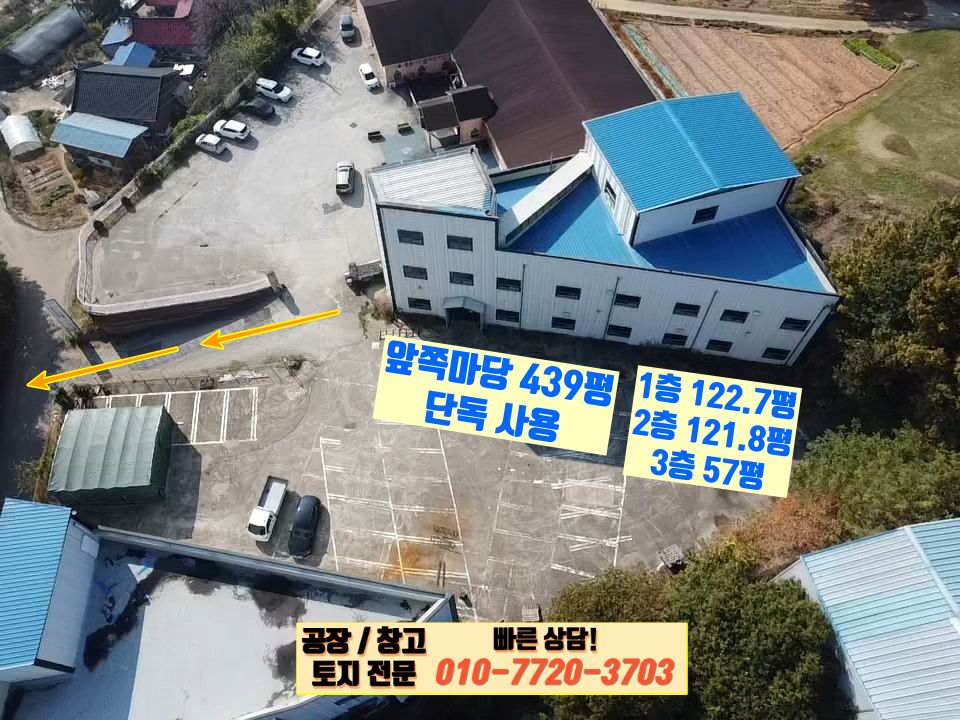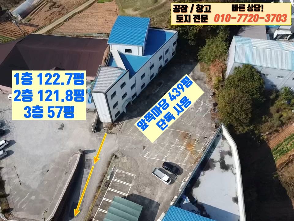 대지 1,451㎡ 439평 / 건축 405.7㎡ 123평 / 연 998.23㎡ 302평 평