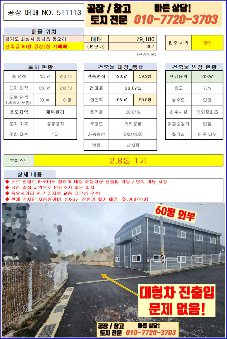✔60평 신축 공장 찾는 분들에게 강력 추천!