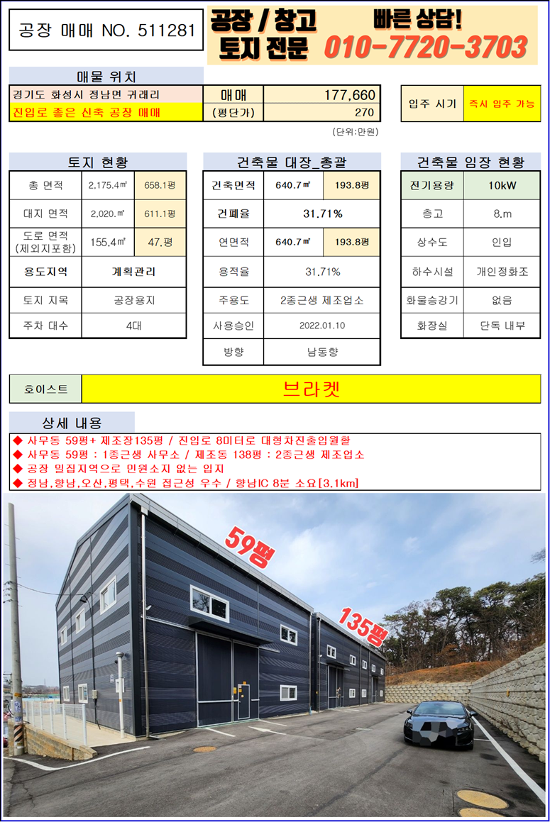 ✅건물 59평(사무실), 138평(공장동) 두개동 구조